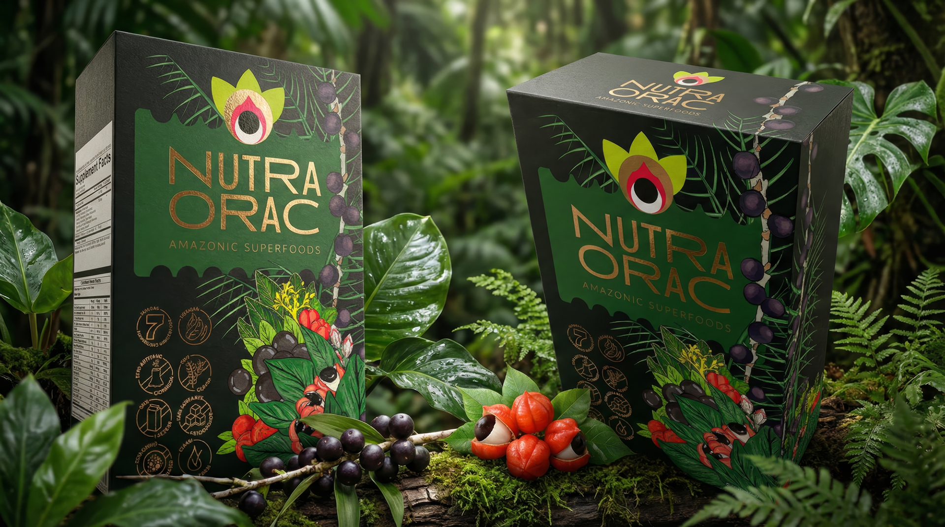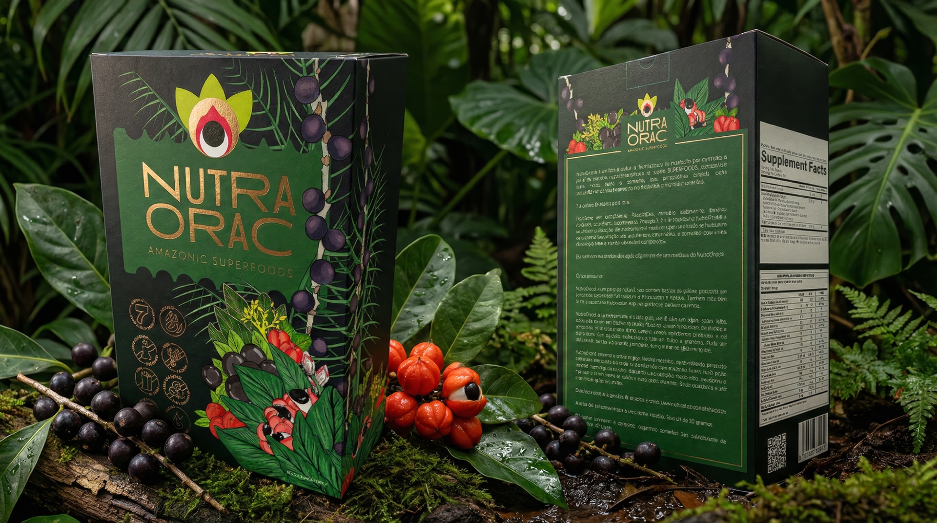 Identidade visual e embalagem feita para a Nutra Orac - Amazonic Super Foods
